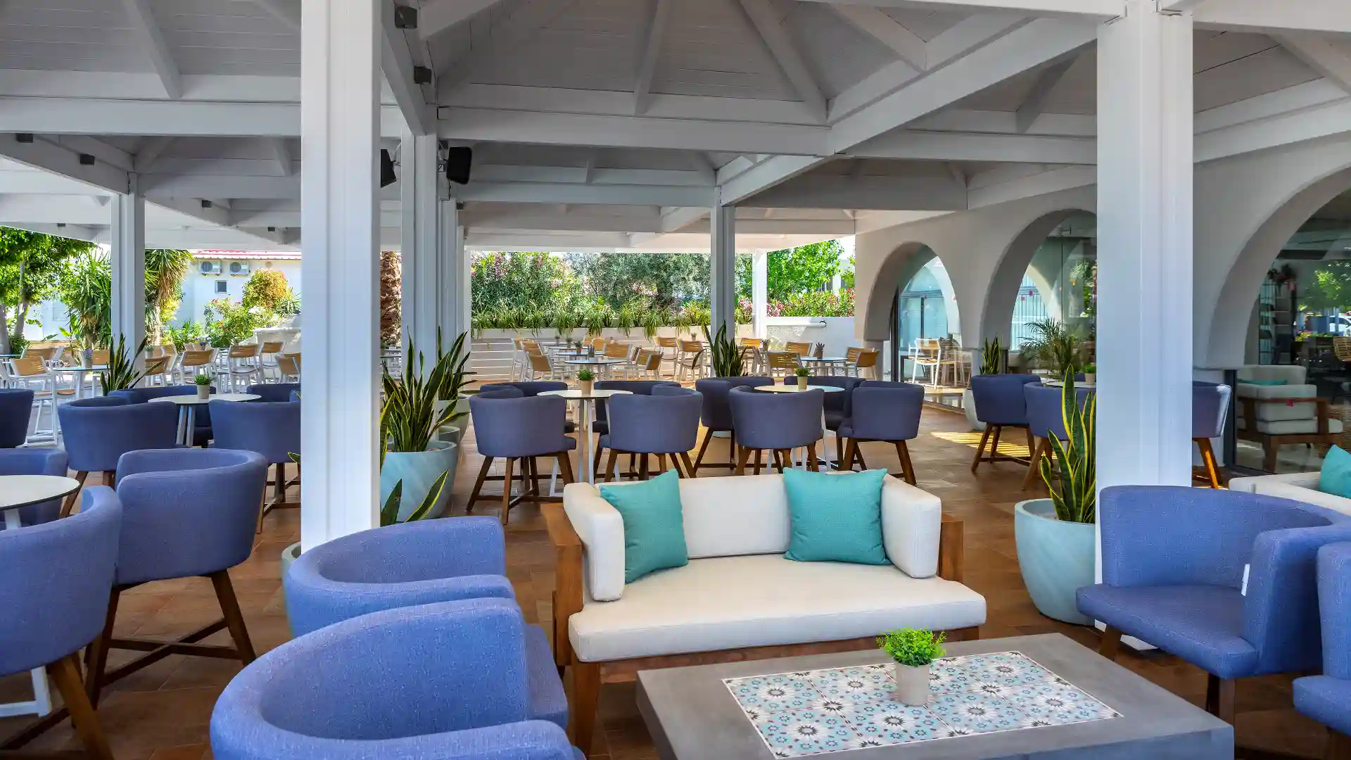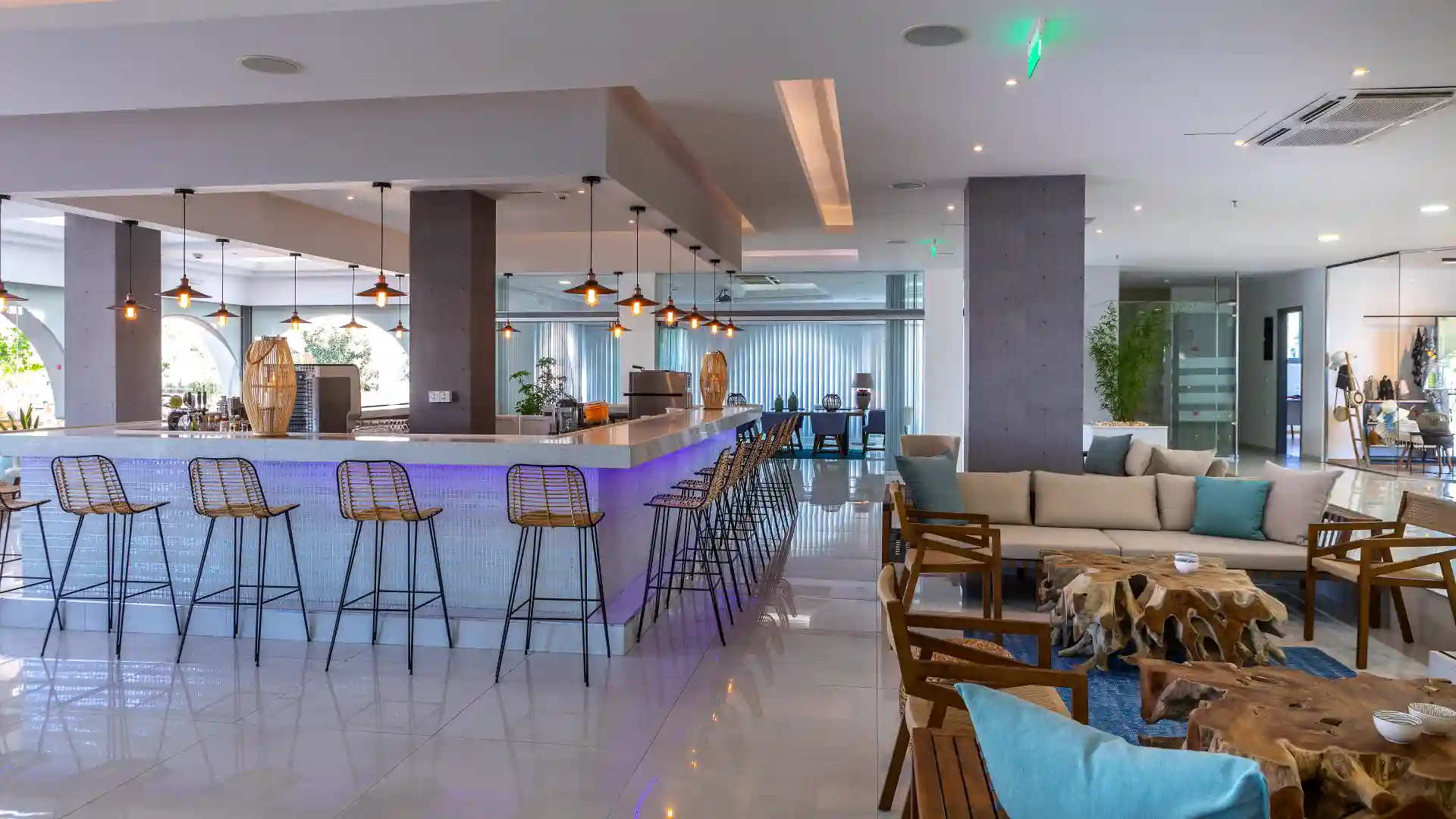At the Blue Horizon Restaurant, open for breakfast, lunch, and dinner, you will savor exquisite Greek and international culinary creations. The restaurant has a generous all-you-can-eat buffet with fresh salads and all kinds of bread and pastries. Dishes include vegetarian options, grilled meats, fish and seafood, and delicious local and international desserts. The little ones will be spoiled for choice too, with age-appropriate health meals and comfort food. Blue Horizon Restaurant has a laid-back feel, with a relaxed dress code and welcoming staff ready to assist you if you have special dietary needs.
